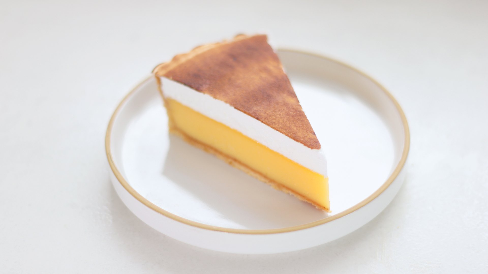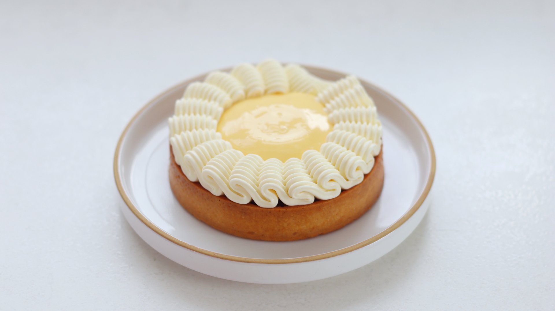 For these lemon & white chocolate tarts, we use the same lemon filling as Tier 1, but instead of baking it we cook it like a curd. It sits on top of an almond mirliton, with a secret layer of zingy lemon confit, topped with a stunning white chocolate namelaka which is piped using a basket weave nozzle. Because we cook the lemon filling like a curd, it has a slightly softer texture, more like a cremeux which contrasts all the textures in the tart really well.
